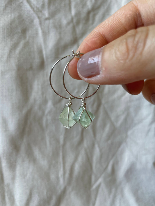 Fluorite Hoops - Sterling Silver