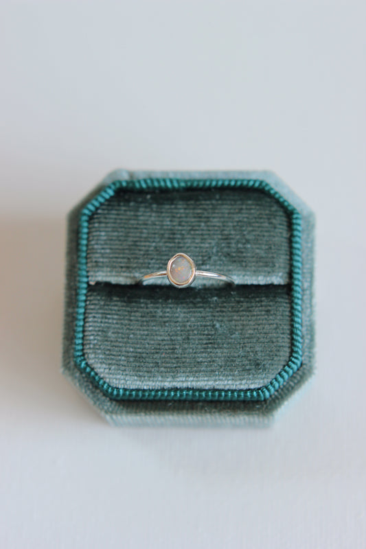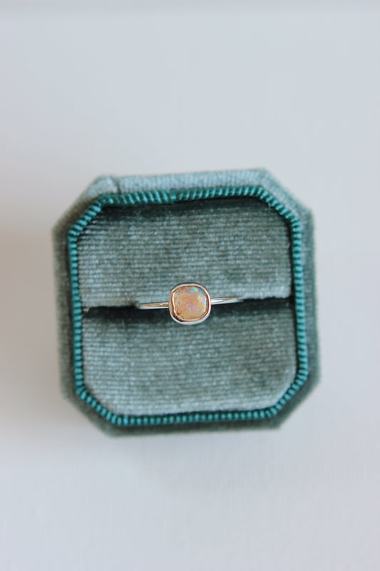 Squre Lightning Ridge Opal Ring | silver | size 8