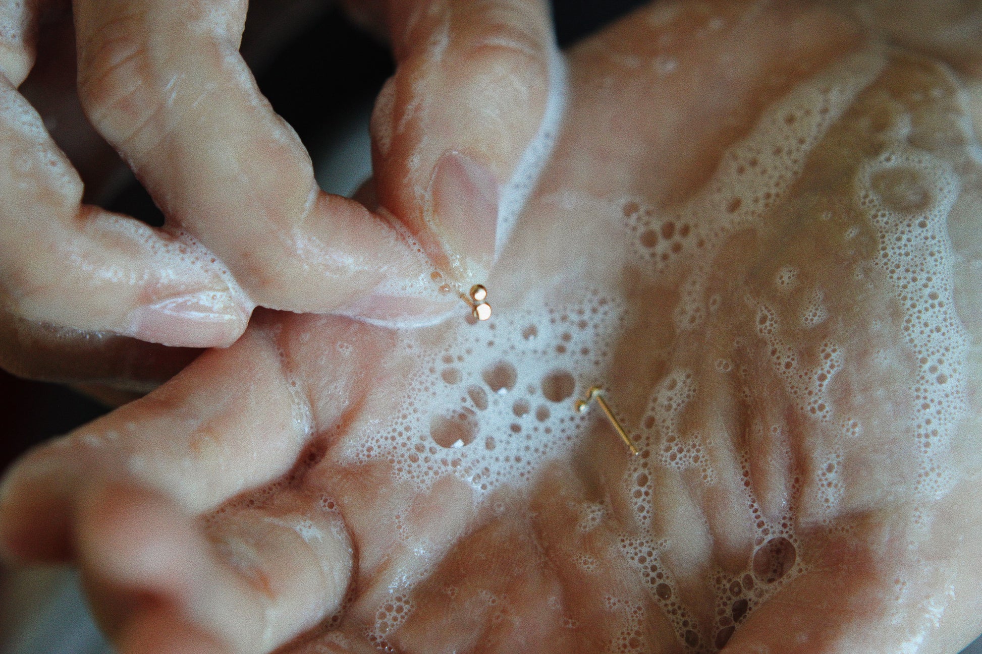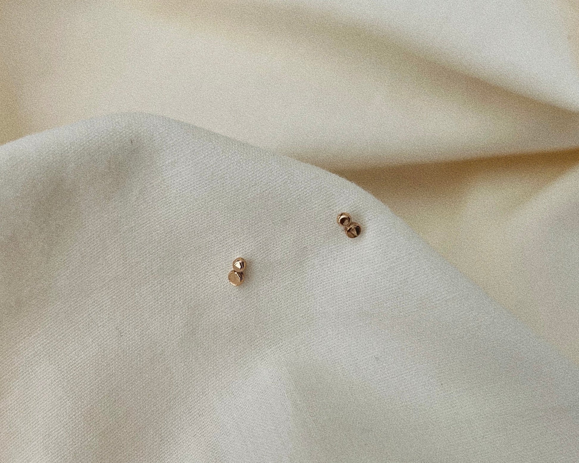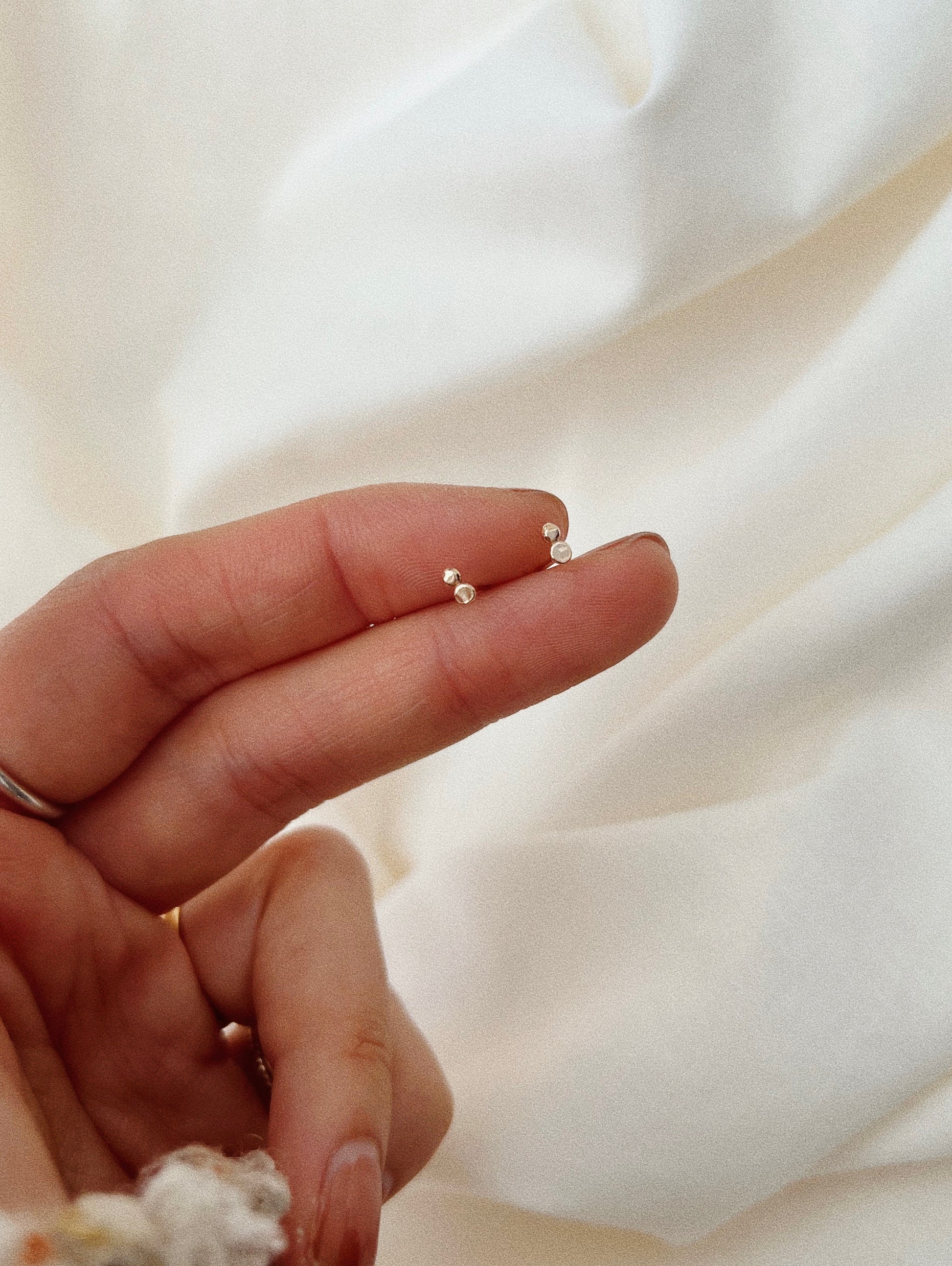 Each Awa stud is individually hand hammered to create a subtle shimmer of bubble like texture — no two are exactly alike. Their organic surface catches the light with every movement, offering a soft glow.