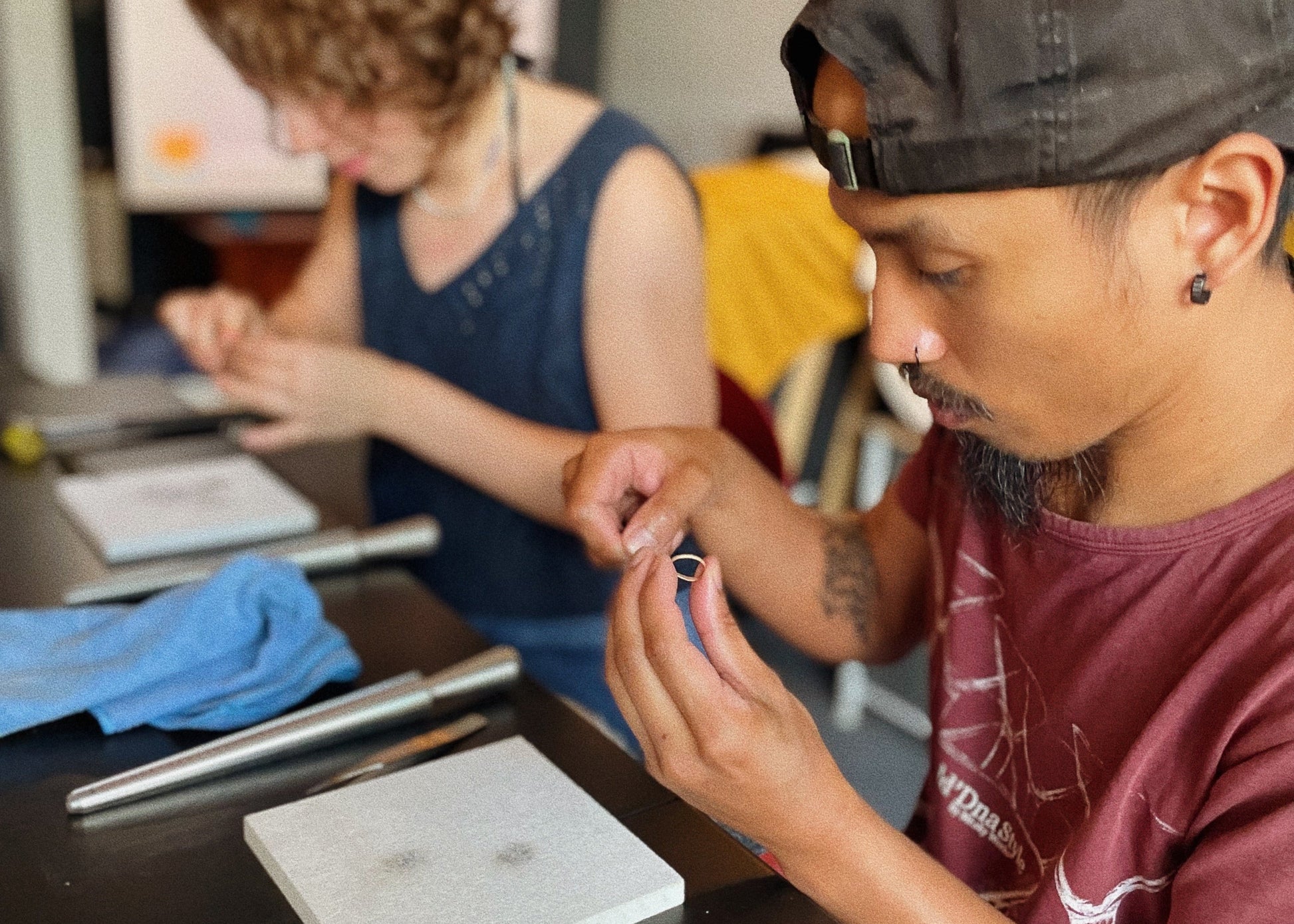 - Basic ring-making techniques: shaping metal, soldering (with Coco’s help), filing, and polishing