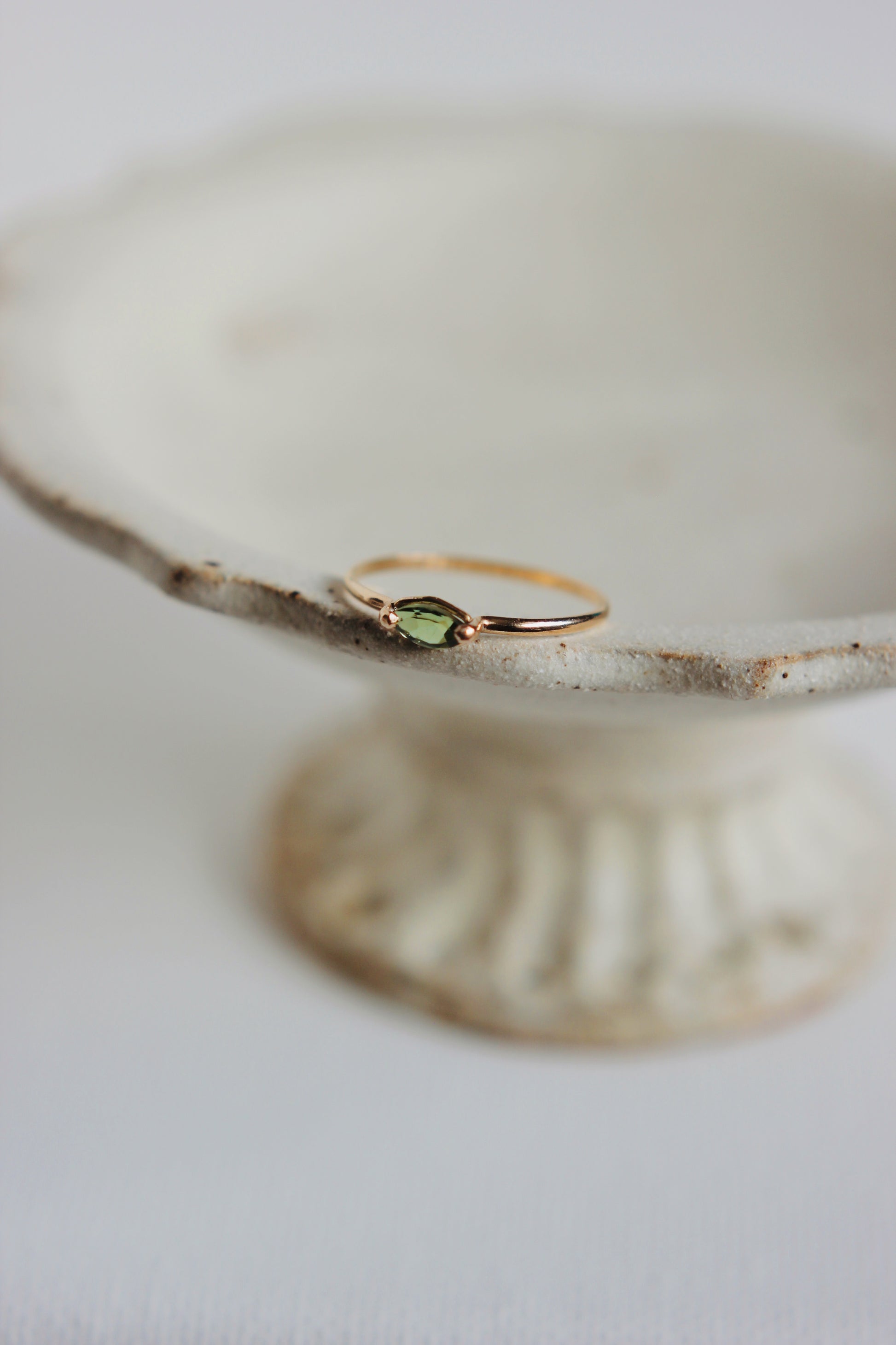 This antique inspired ring features a marquise-cut African green tourmaline. This is one of a kind ring and you will receive the exact piece from the picture.