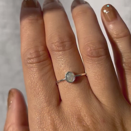 This solid opal ring in sterling silver ensures durability and longevity, promising a piece that can be cherished and worn for years to come.